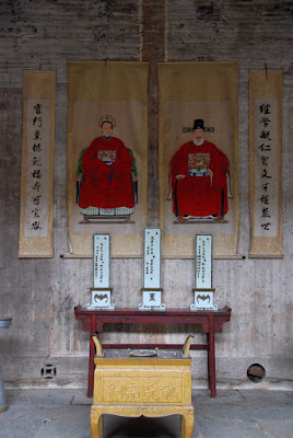 眀堂的后面为正厅,是主人起居会客的地方。一般正中摆放八仙桌,桌上拱祖先牌位,两侧为太师椅,墙上挂字画对联。