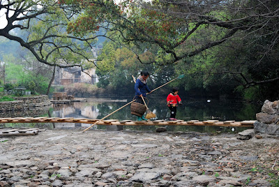 察关水口的秀拱桥。桥洞和倒影如同画框,将远处的堤坝、村庄收入画中。28株古树绕桥载植,取“28星 宿(秀)拱月”之意。